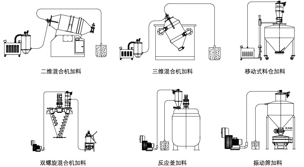 三:真空上料機與反應釜、注塑機、擠出機、球磨機、包裝機、粉碎機、混合機、料倉等一系列設備配套。